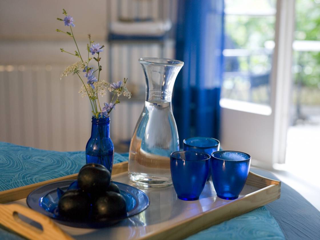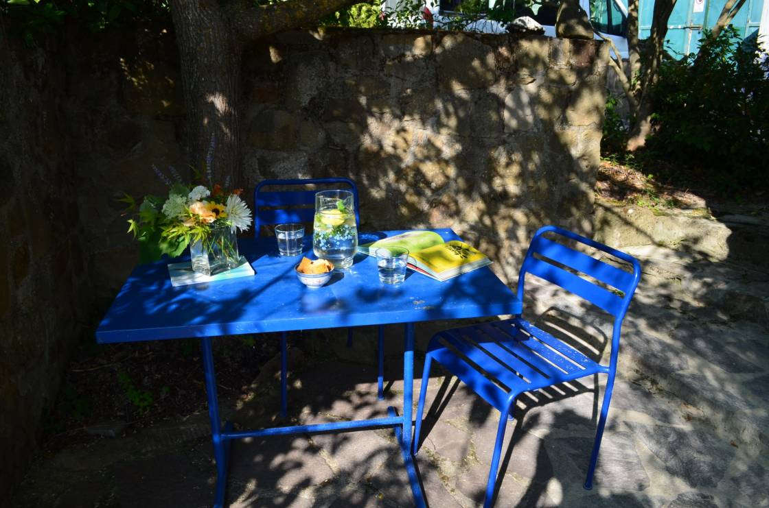 Ich freue mich jedes Mal, durch den Garten vorbei an der kleinen Terrasse unter dem Maulbeerbaum, an Rosen und Lavendel durch die blau umrandete Glastüre wieder in „mein“ LA PIPO eintreten zu können.